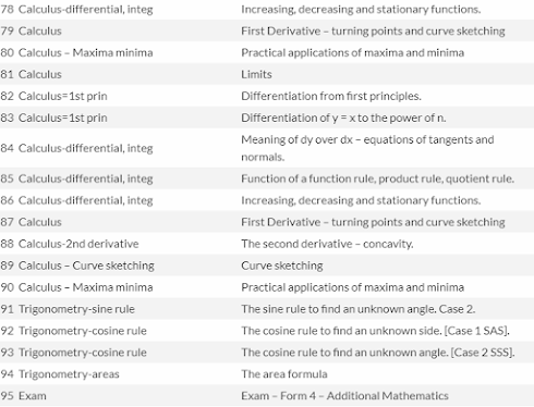 Additional Mathematics Form 4 Syllabus